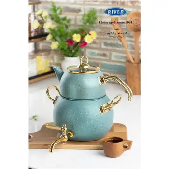 کتری و قوری گرانیتی دسته طلایی لوله دار ریور در رنگبندی زیبا با کیفیت عالی